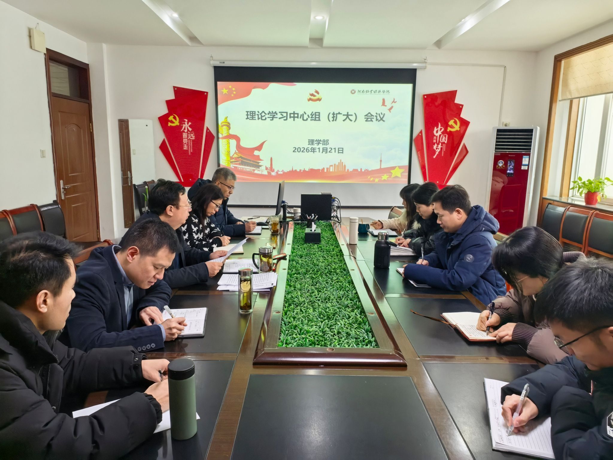 2026年1月21日,ok138cn太阳集团529党总支在英才校区综合楼303会议室召开理论学习中心组(扩大)会议。会议由党总支书记刘晖主持,理论学习中心组成员、各教研室主任参加。