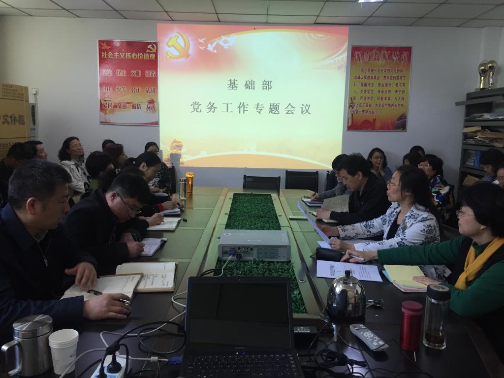 4月13日下午,基础部在部门会议室召开党务工作专题会议和精神文明工作专题会议,会议由部门书记赵白云主持,部门班子成员及全体老师参加了会议。