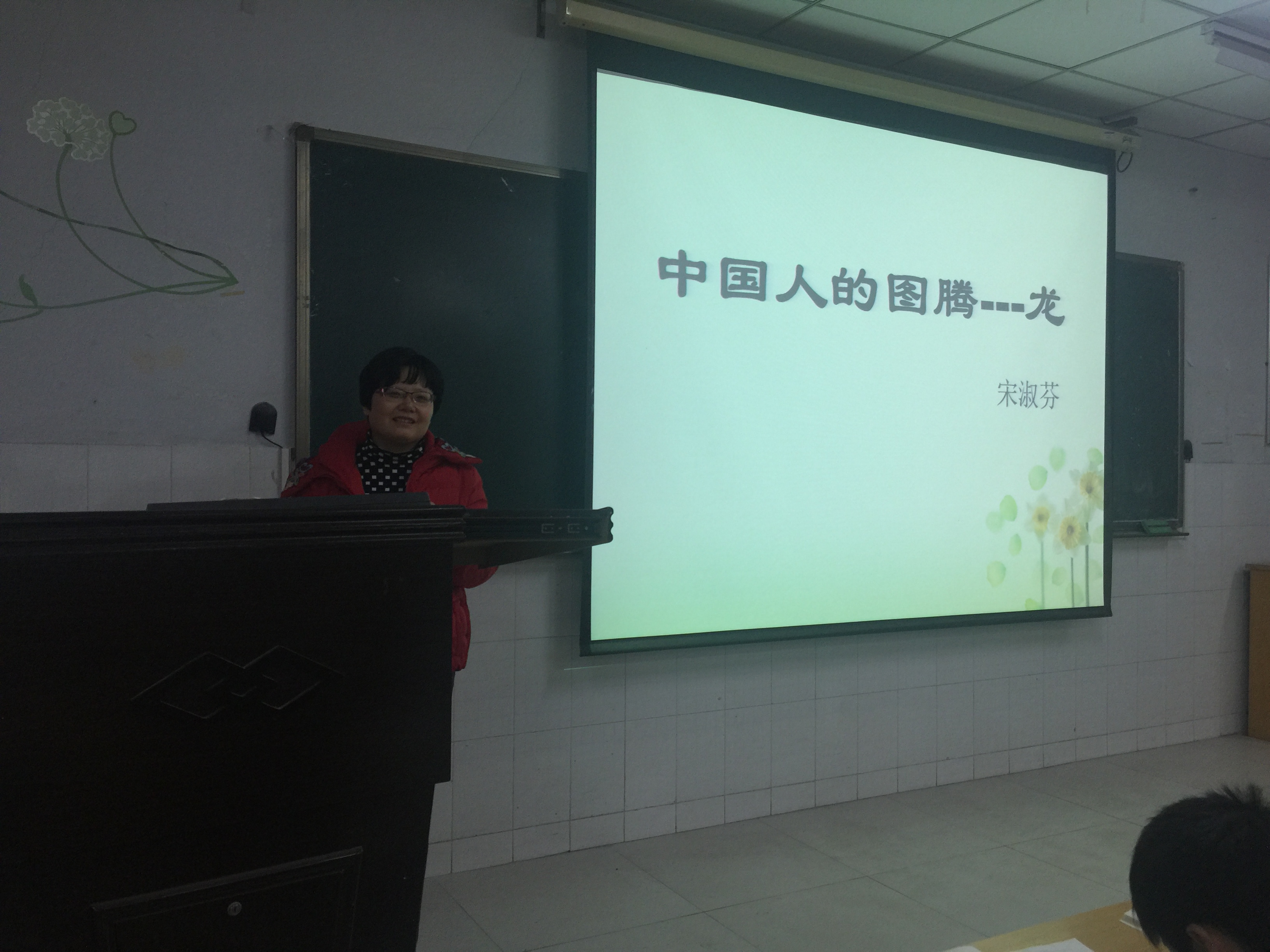 2017年3月22日下午14:30—16:20,由语文教研室宋淑芬老师担任主讲,为16物流专业的120名学生作了题为《中国人的图腾——龙》的讲座。宋老师引经据典、结合现实,用一系列生动的事例,解释了图腾的含义,龙作为华夏族图腾的形成过程,以及龙图腾在民间的传承与发展,并揭示龙文化对中国建筑、绘画、社会经济、思想文化的深刻影响。同学们听讲认真、气氛活跃,课堂上精彩不断,掌声不断,同学们纷纷表示受益匪浅。