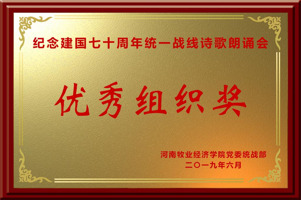 纪念建国七十周年统一战线诗歌朗诵会优秀组织奖