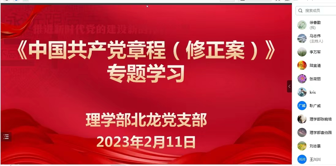 此次专题学习采取党课辅导、研讨交流、个人自学和知识测试“讲学测”相结合的方式进行。11日上午,14名党员教师在线聆听张荷丽副主任、李万军主任的党课辅导。张主任从“党章发展的历史进程”、“党的二十大对党章做了哪些修改”、“新旧党章对比”三个方面对《新党章》修改内容进行了详细解读,深刻领会党章的丰富内涵和时代要求,进一步凝心聚魂,认真学习党章、严格遵守党章;李主任通过《习近平在学习贯彻党的二十大精神研讨班开班式上的重要讲话》带领大家学习了中国式现代化理论,强调正确理解和大力推进中国式现代化。针对党课辅导内容,与会同志结合党员身份和自身工作,开展了学习讨论交流。下午,支部党员个人自学了党的二十大报告和新党章全文,并围绕党的二十大报告和新党章重要知识点,与会同志进行了闭卷答题测试。