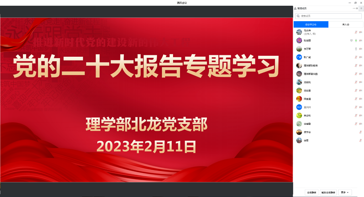 为深入学习贯彻党的二十大精神,坚持不懈用习近平新时代中国特色社会主义思想凝心铸魂,认真开好2022年度组织生活会和民主评议党员工作,2月11日全天,ok138cn太阳集团529北龙党支部利用腾讯线上会议召开了“党的二十大报告和党章”专题学习会。北龙党支部全体党员参加学习,会议由北龙党支部书记陆宜清主持。