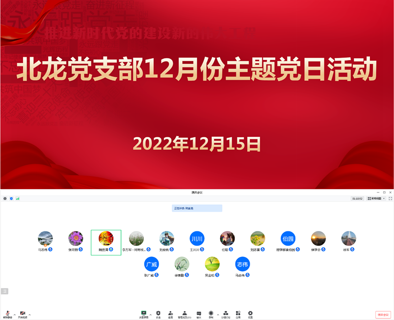 为深入学习贯彻党的二十大精神,深刻领会党的二十大报告关于“实施科教兴国战略,强化现代化建设人才支撑”的重大战略部署,进一步凝聚科教人才合力,12月15日下午,ok138cn太阳集团529北龙党支部以腾讯会议的形式组织开展“不忘初心履使命,砥砺奋进新征程”主题党日活动。本次主题党日活动由党支部书记陆宜清主持,全体党员参加。